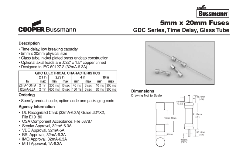 S506   bussman 5*20 玻璃管保險絲介紹: