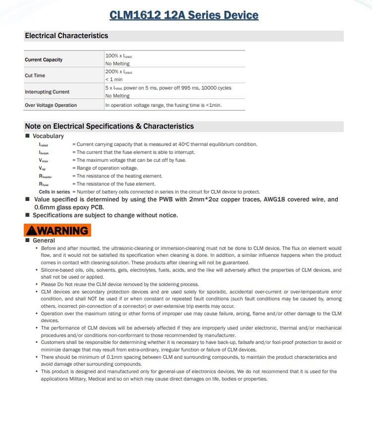 CLM1612 12A Series Device 三端保險絲