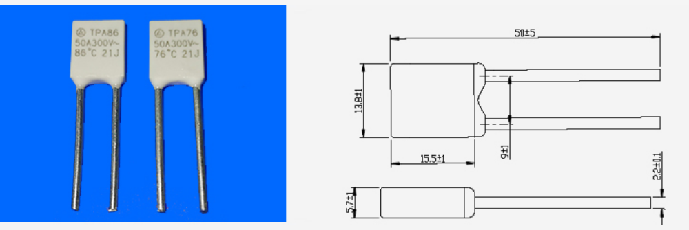 方形溫度保險絲:TPA,TPB 13.8X5.7X15.5 50A300V