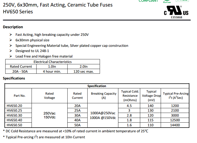 保險絲HV650 series 250VAC 20A-50A介紹: