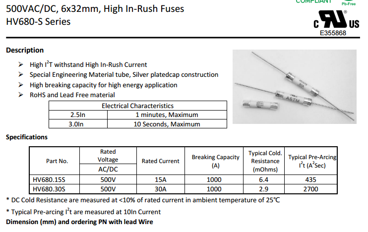 ? Special Engineering Material tube, Silver plated cap construction ? High breaking capacity for high energy application